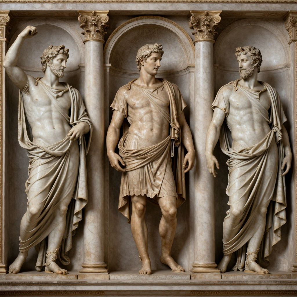 Hyperrealistic art (Classicism), (Exemplifying order and balance through meticulous symmetry, refined compositions evoke the grandeur of ancient Greece and Rome), a restrained color palette of noble hues lends an air of sophistication, every detail crafted with exacting precision, imbuing each piece with a timeless elegance that transcends eras, by (((Michelangelo), Andrea Palladio, inspired by the lofty ideals of Leonardo da Vinci) and Nicolas Poussin). . Extremely high-resolution details, photographic, realism pushed to extreme, fine texture, incredibly lifelike