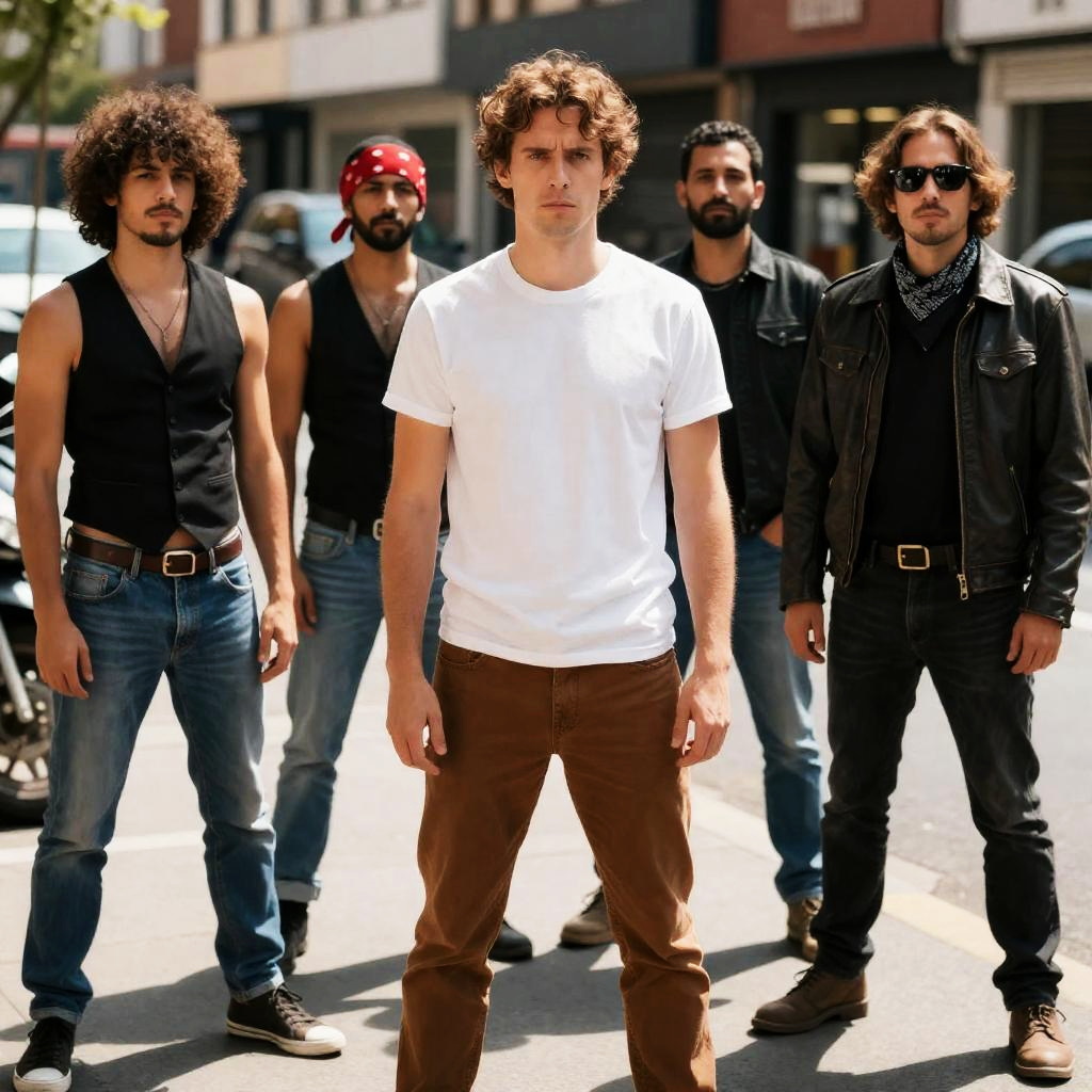 Black-and-white photo of five men playing poker in a dimly lit bar. The central man with curly hair and sunglasses leans forward to place chips on the table. Another man wears a leather jacket, and a third man is dressed in a patterned suit. Poker chips, cards, a glass, and a beer bottle are visible on the table. The background features graffiti and partially visible faces, creating an intense atmosphere.
