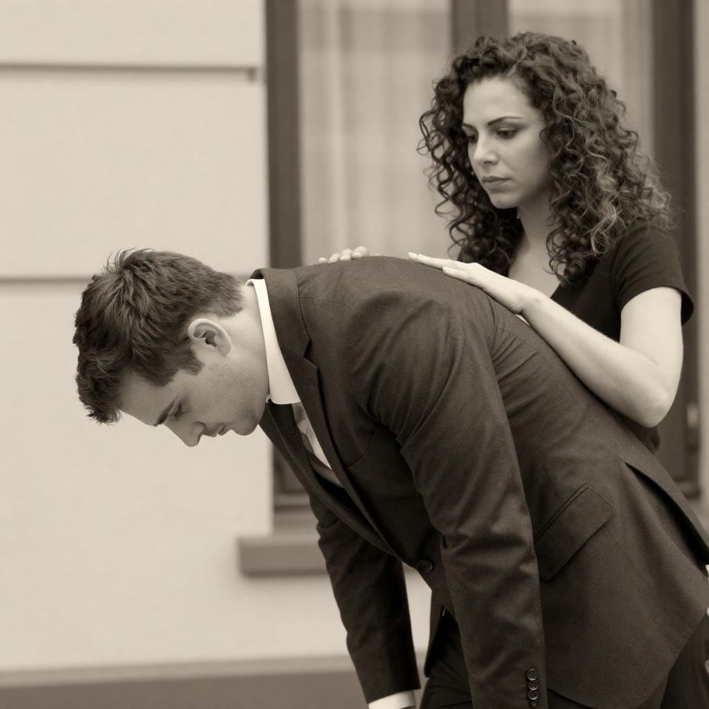 Black-and-white photograph of a couple dancing at night. Blonde woman with long hair, dark hoodie, embracing a short-haired man in a dark shirt. Background with blurred bokeh lights. Woman's arm around man's shoulder, intimate gaze, soft expressions.