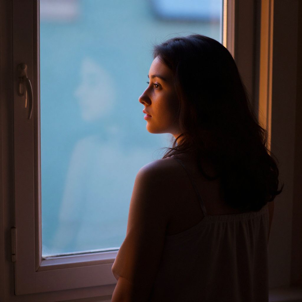 Captured in a moment of quiet anticipation, the woman at the window embodies a delicate balance of hope and introspection, her silhouette framed by vibrant hues that echo the warmth of longing and the coolness of solitude.