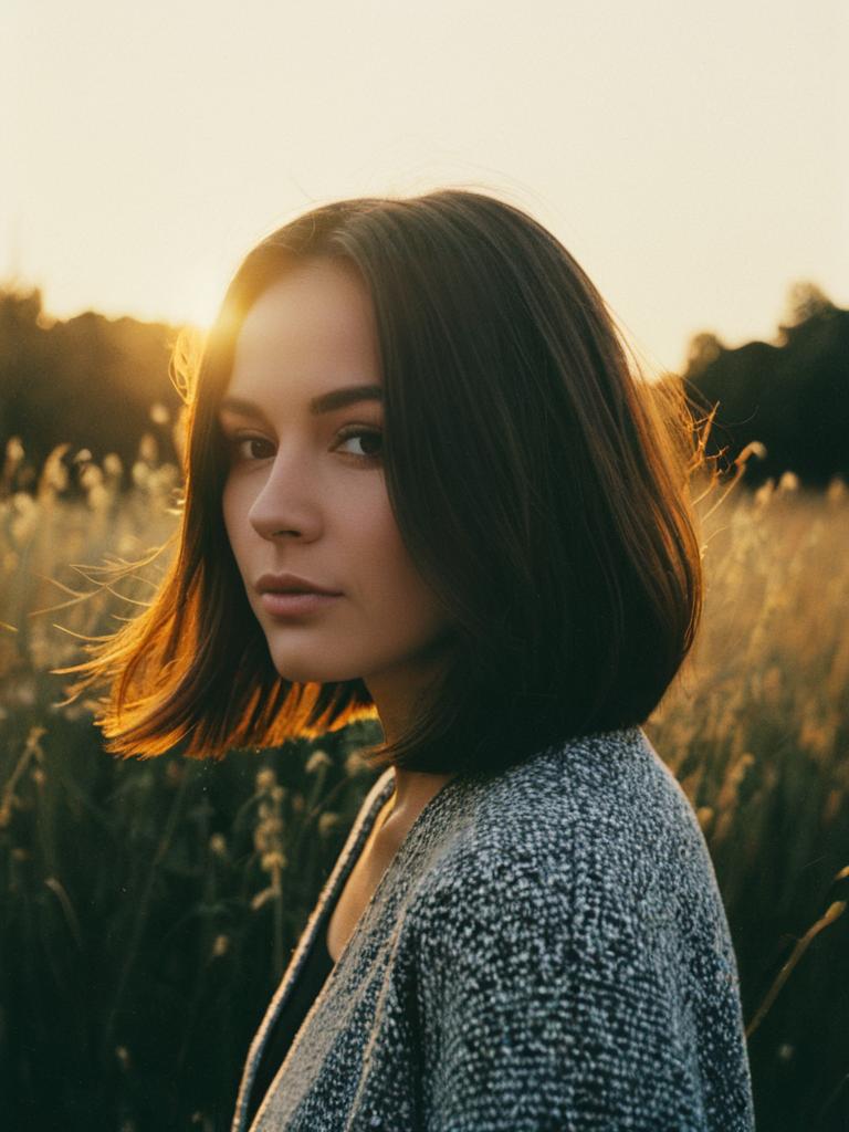 Woman with Long Bob Hairstyle in Golden Hour Light