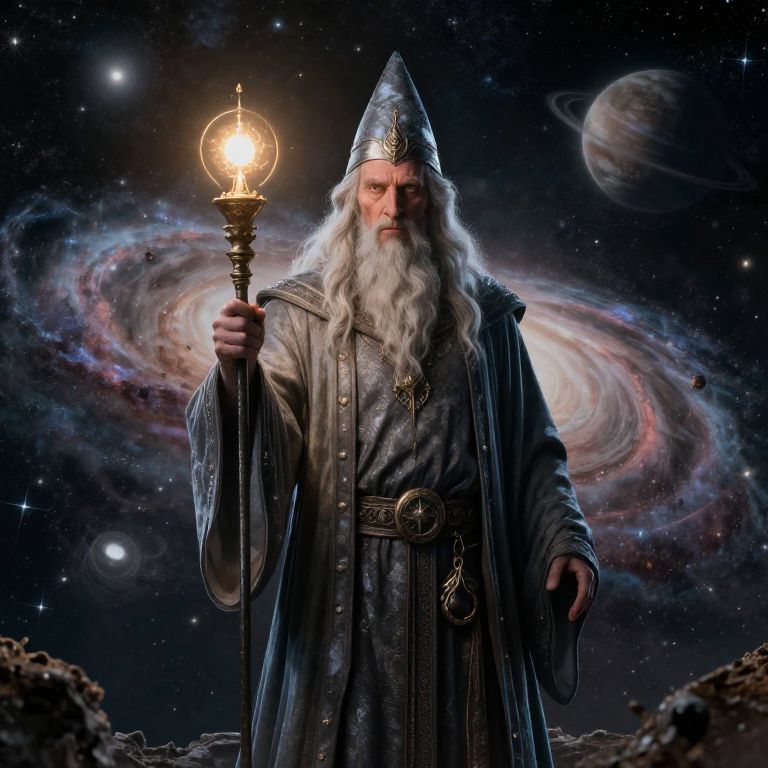 Wizard The infinite universe with galaxies planets stars and black holes in an ultra detailed ultrahd photorealistic style,