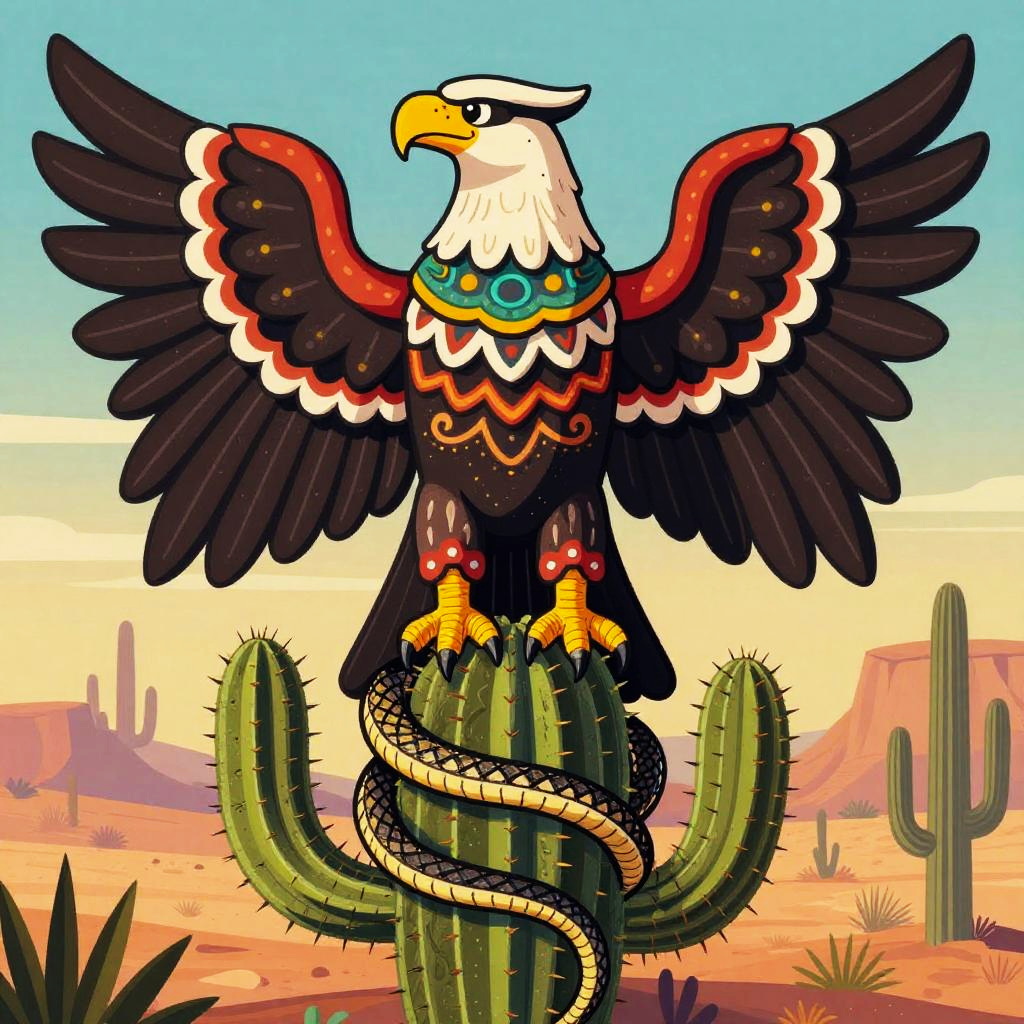 Symbolic Mexican Eagle on Cactus