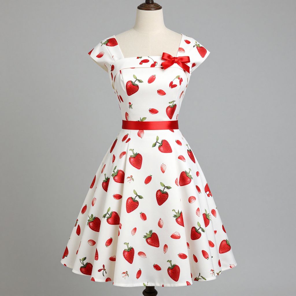 Photograph of a mannequin displaying a vibrant ballet tutu. The tutu features a black bodice with red velvet panels and three black heart-shaped buttons down the center. The skirt is a layered, fluffy tulle in red at the bottom, transitioning to white at the top. The black bodice is accented with gold trim. The mannequin is white and stands against a solid dark gray background. The tutu's design combines gothic and classic ballet elements, creating a striking contrast. The lighting highlights the texture and color of the fabric, emphasizing the tutu's elegant and dramatic style.