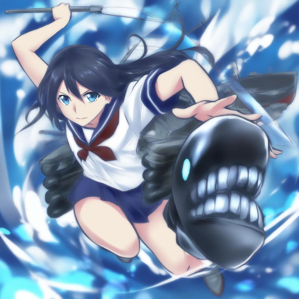 Ha-class destroyer, kantai collection, 1girl, blue eyes, long hair, short hair, serafuku, serafuku, by artist falken (yutozin), animagine