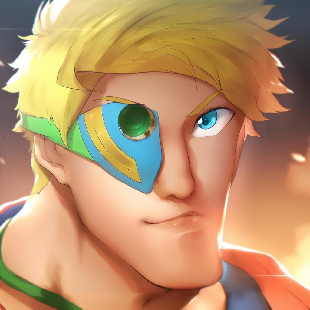 Guy cecil, tales of (series), 1boy, blue eyes, green eyes, blonde hair, short hair, gloves, green choker, by artist niwarhythm, leet