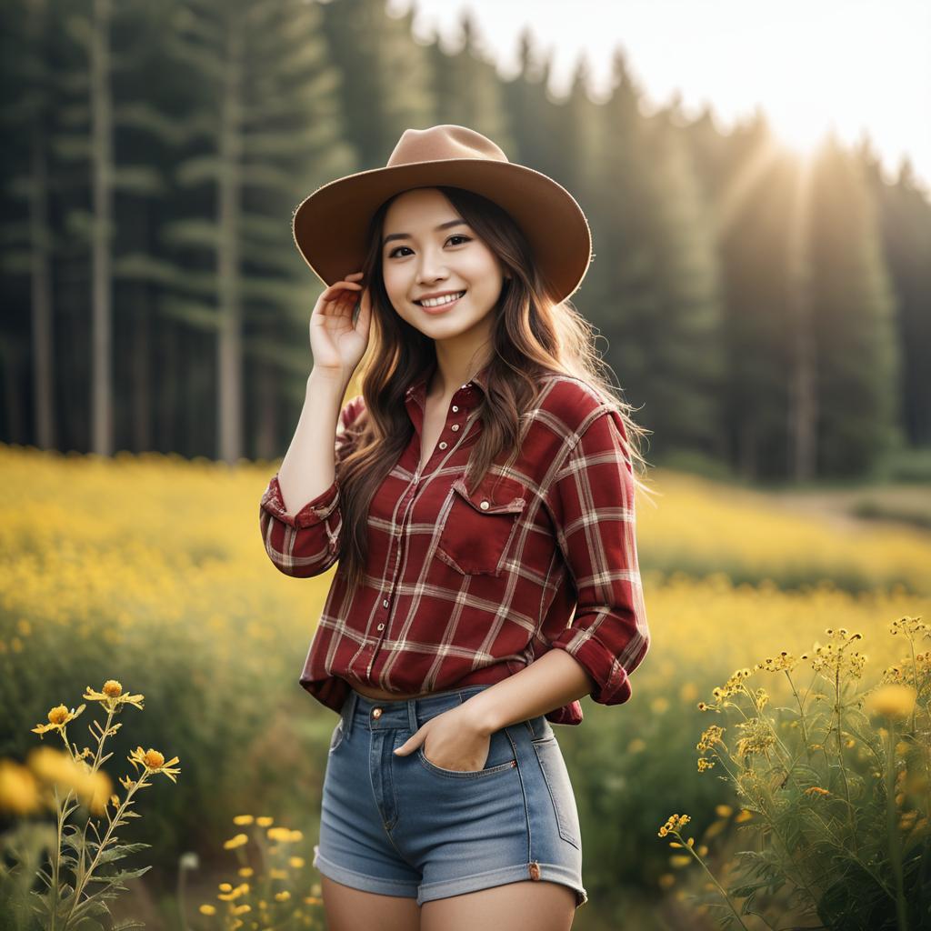 Smiling Girl in Flower Field