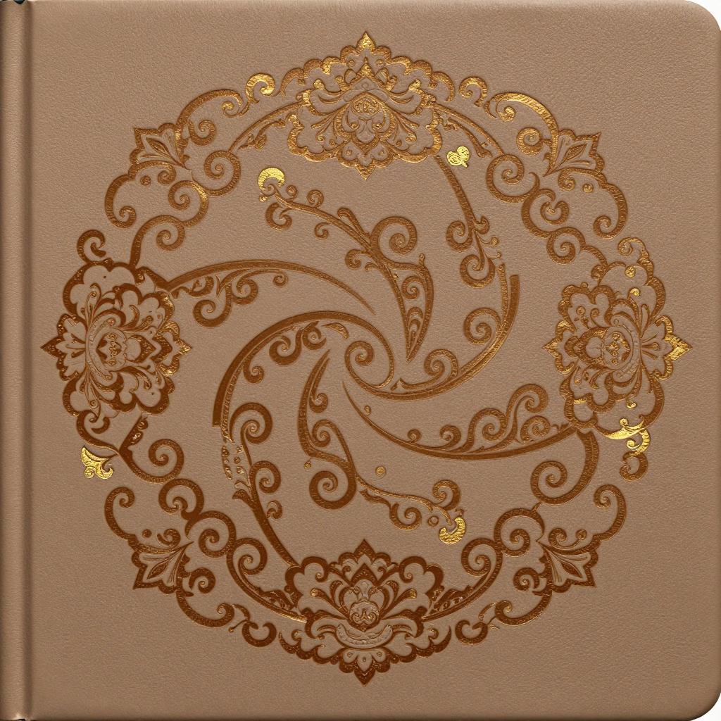 Scrollworks pattern featuring Chinoiserie scrolls mixed with stylized clouds and peonies in sepia brown scrollwork on aged paper arranged as spiraling scrolls forming a vortex-like composition on embossed leather book cover rendered as gold foil stamping effect with subtle bevel, ultra-detailed, sharp ornamental design, high resolution, intricate decorative pattern art