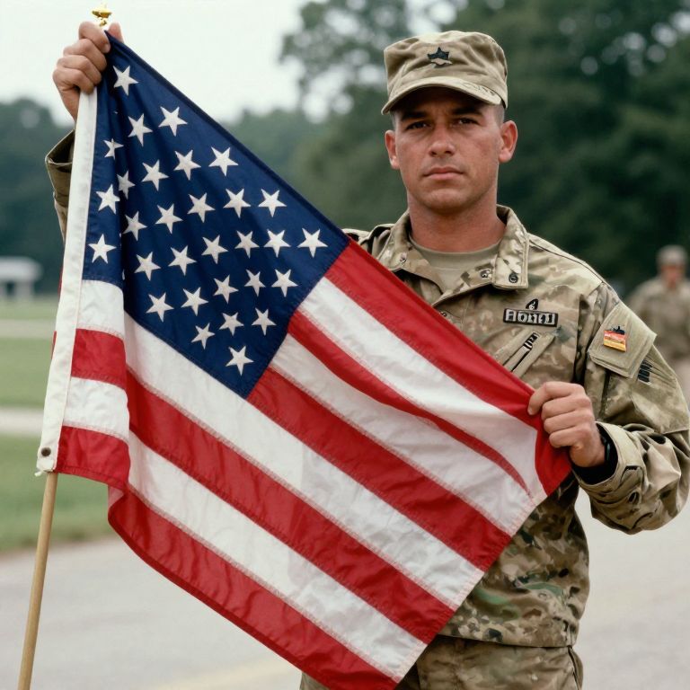 American Soldier Holding Flag