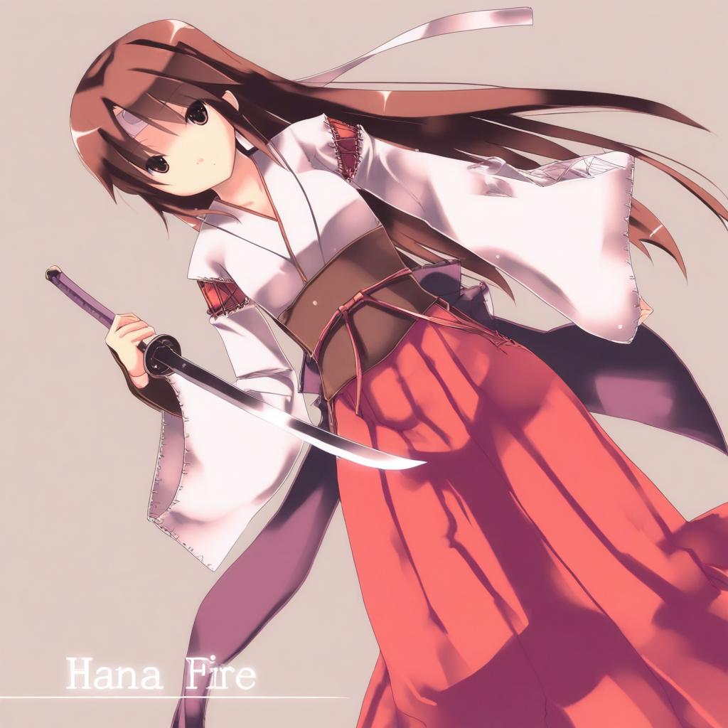 Hana (fire emblem), fire emblem, 1girl, brown eyes, brown hair, long hair, japanese clothes, katana, headband, by artist refeia, leet