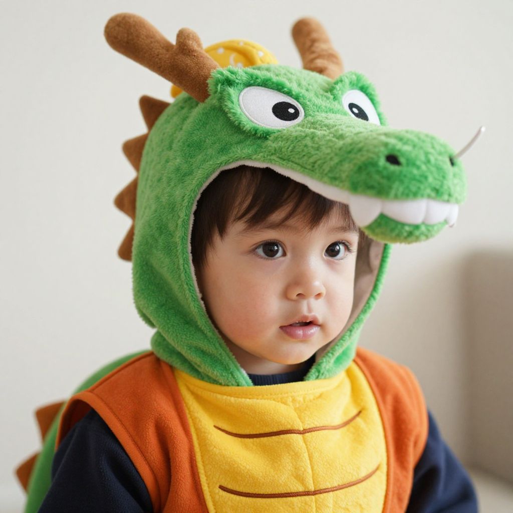 "Toddler Goku, a close up of a young child wearing a dragon costume"