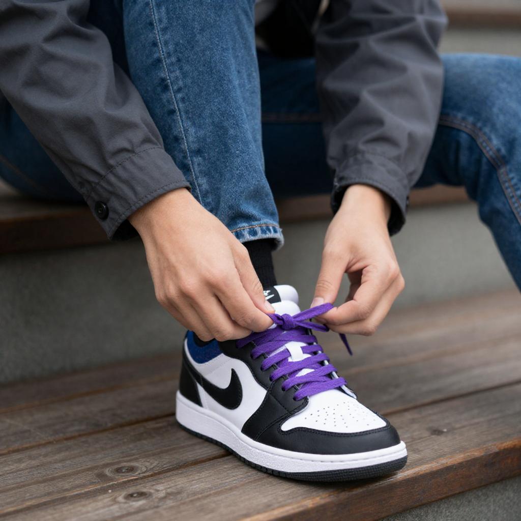 Tying Purple Laces on Sneakers