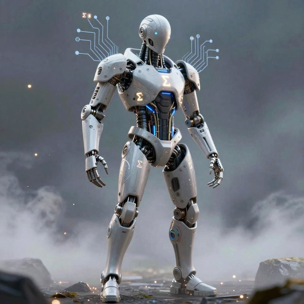 Sigma creeper entwined with digital circuits, biomechanical creature with glowing sigma symbols etched on its armor, misty background with sparks, futuristic cyberpunk atmosphere