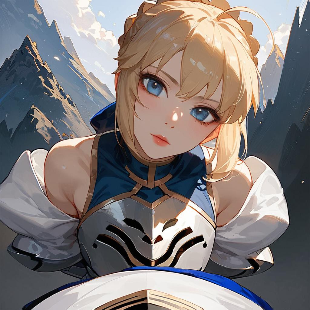 Score_9, score_8_up, score_7_up, source_anime, (pov), (pov looking up), ((Saber), Fate, Fate Grand Order, Artoria Pendragon, armor, (looking down), (leaning forward)), concerned, arms behind back, hands behind back, head tilt, looking at viewer, detailed eyes, [[eyeshadow]], (mountain) background, NO_LORA, absurdres, [[backlighting]]