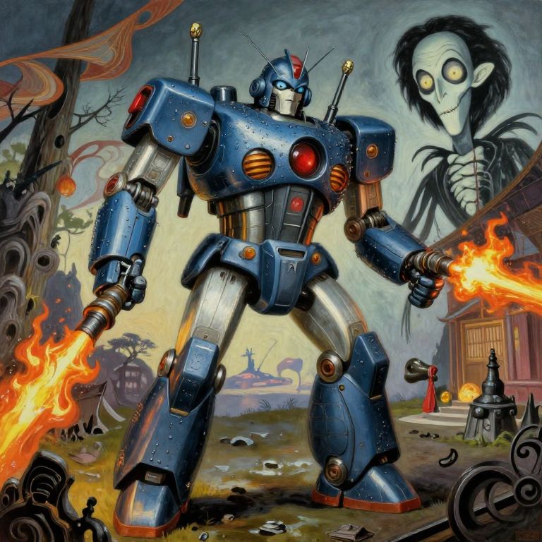 Frazetta-Inspired Steampunk Mecha Scarecrow