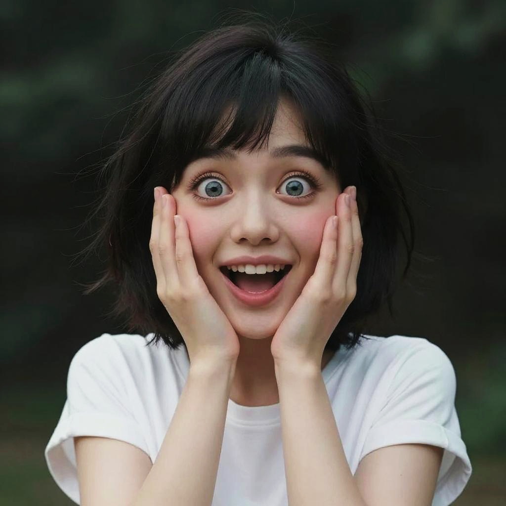 "cinematic photo crazy insane, high energy, magic, hyper realistic, detailed and realistic portrait of a woman, cartoon style, round eyes and short messy hair shot outside, wearing a white t shirt, skin texture, chapped lips, soft natural lighting, portrait photography, 85mm lens, magical photography, dramatic lighting, photo realism, ultra-detailed, intimate portrait composition, Cinestill 800T, front light, (open mouth), smiling, atletic small waist, (((masterpiece))), ((best quality)), (((8k photography)), ((hands on face)), (elegant, beauty), ((blushed)), ((beautiful light gray eyes)), ((sexy goth girl, pure delicate innocent face)) and (smooth detailed face), (((hyper realistic))), ((black hair))), (blunt bangs), (symmetrical legs), symmetrical perfect body, sharp focus, (volumetric lighting), intricate details, rainbow paint, a girl made entirely out of rainbow paint, entirely paint, 1girl, (intricate details, hyperdetailed:1.15), gorgeous lighting, rainbow, paint splatter, splashes, very rainbow, very colorful, neon, paint drops, rainbow paint background, colorful background, ((high detailed skin, 8k uhd, dslr, soft lighting, high quality, film grain, Fujifilm XT3, HD, Sharp)) (canon 50mm) intricate details photorealistic . 35mm photograph, bokeh, professional, 4k, highly detailed, A glitched-out (anime girl:1.3) dances across the screen, her movements and form constantly shifting and (deconstructing:1.2), embodying the dynamic essence of (breakcore:1.2), dynamic essence:1.1, cute red cheeks