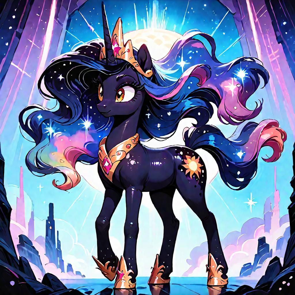 Score_9, score_8_up, score_7_up, (source_pony:1.0), beautiful translucent goddess of the afterlife, (sparkling translucent skin:1.3), cosmic hair, cosmic crown, gigantic cosmic breasts, huge hips, cosmic skin, naked, dynamic pose, feral pony, ethereal background, (dynamic lighting:1.1), (detailed marvel style:1.0), (detailed image, high resolution, 5k resolution, denoise:1.0)