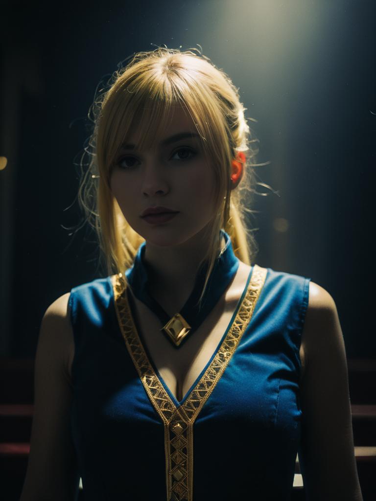 Sexy cosplay woman character wearing Lucy Heartfilia costume. Realistic photo. Jane Doe dressed as Lucy Heartfilia --sref 1391