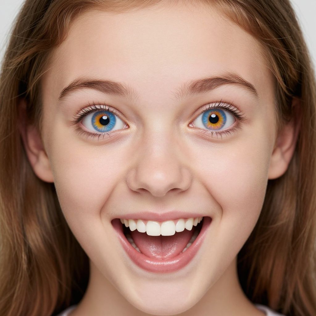 An incredibly detailed perfection style photoshoot of a stunningly beautiful 18 year old Swiss girl with flawless model-like facial features, flawless light pale skin, brownish blonde hair, blue eyes, youthful innocent charm, minimal makeup, and large captivating eyes that exude a sense of strength and innocence, She is ecstatic and has a huge maniacal smile, Her eyes are unnaturally large and colorful, Her eyes are absurdly large, and colorful, Her skin is facial skin is perfectly smooth and featureless