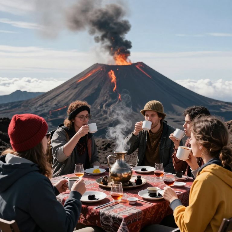 Tea Party Near Erupting Volcano