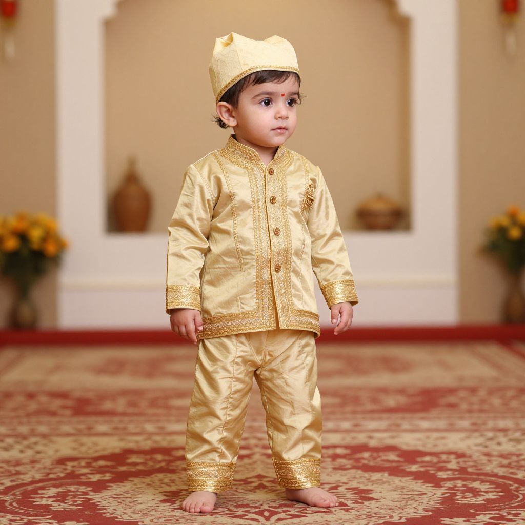 Infant Base Wear Costume, toddler in traditional indian clothing standing in a hall