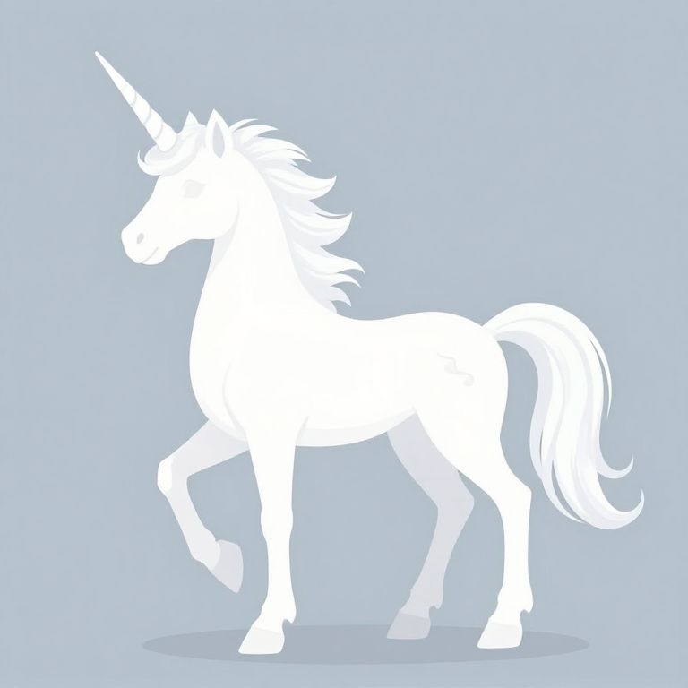 Silhouette of a white unicorn with a flowing mane and tail, standing on a light blue background. Minimalist, digital art style.