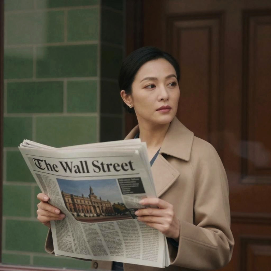 Photograph of a disaster scene. A woman with long black hair, wearing a blue shirt, black vest, and ID badge, talks on a phone. Four construction workers in orange vests and yellow helmets, with a dog, walk behind her amidst debris and dust. Smoky background. Woman's expression is serious. Workers' expressions are neutral. Debris and wreckage scattered on the ground. Dust and smoke fill the air.