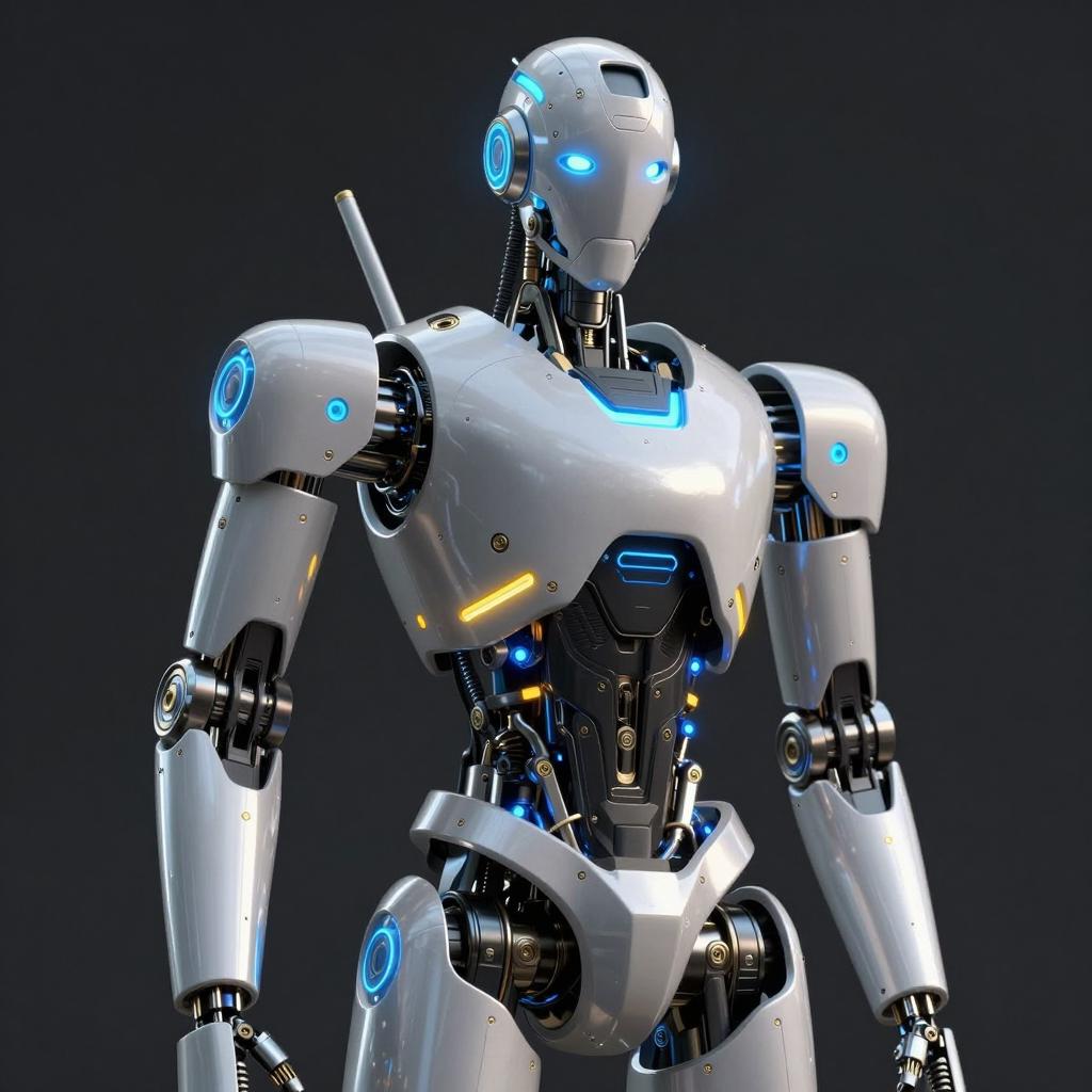 Metallic Robot in Lush Forest Setting