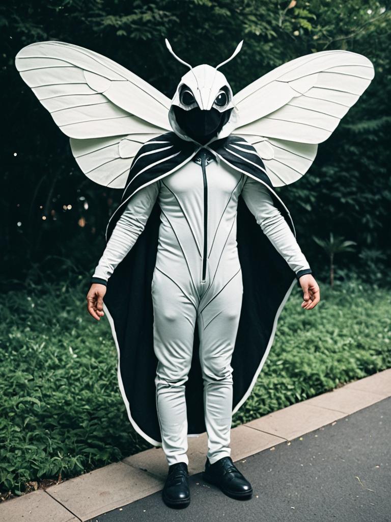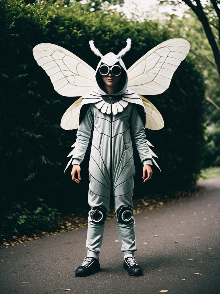 Boy in Moth Costume, full-body cosplay photo with wings