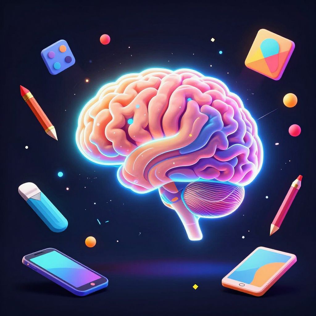 Glowing AI Brain with Artistic Tools