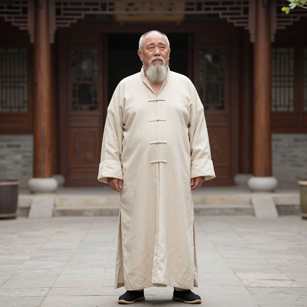 Old Man Costume Big, man in traditional chinese clothing standing in a courtyard