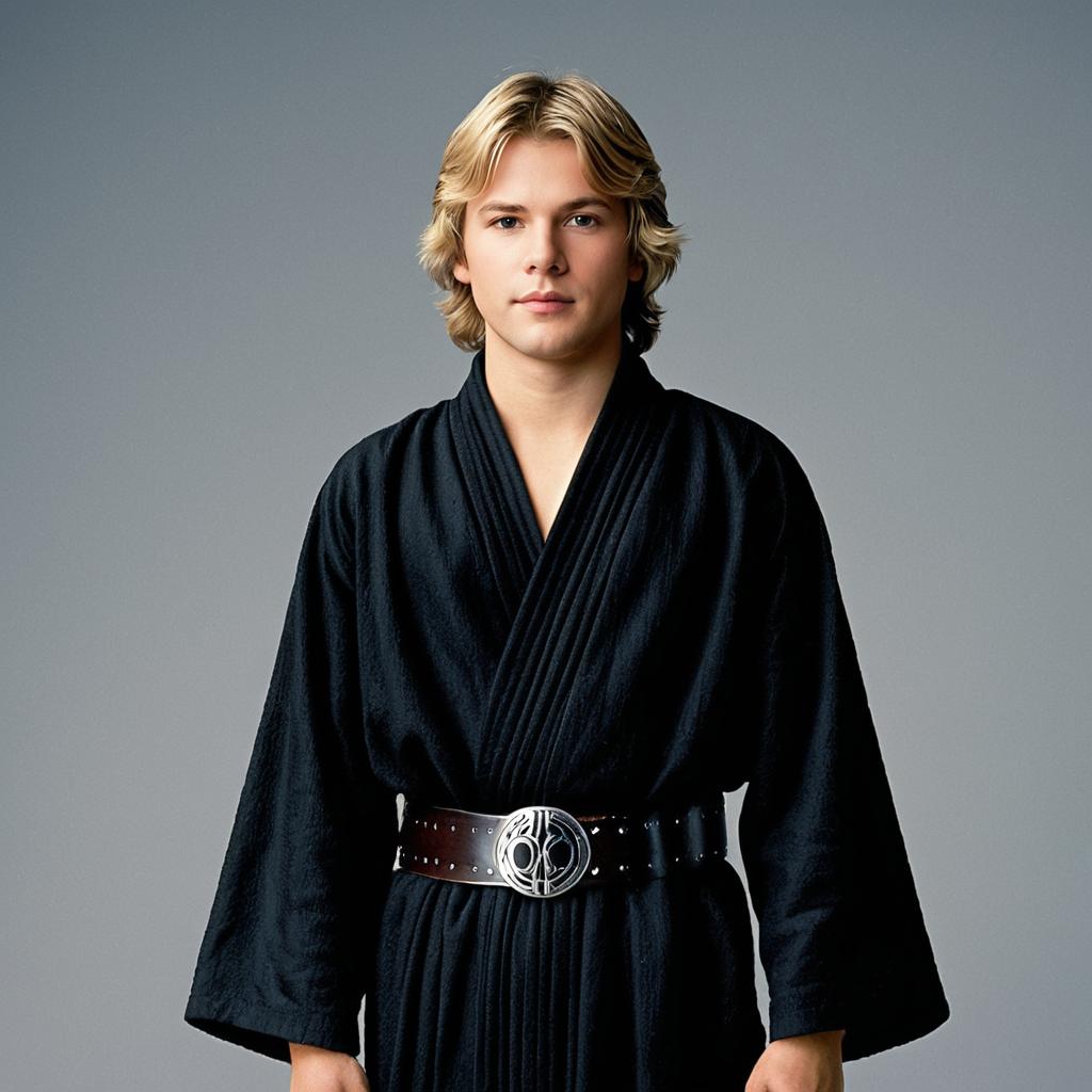 Blonde Man in Black Robe with Belt