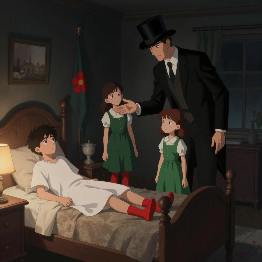 Tense Nighttime Scene in a Bedroom