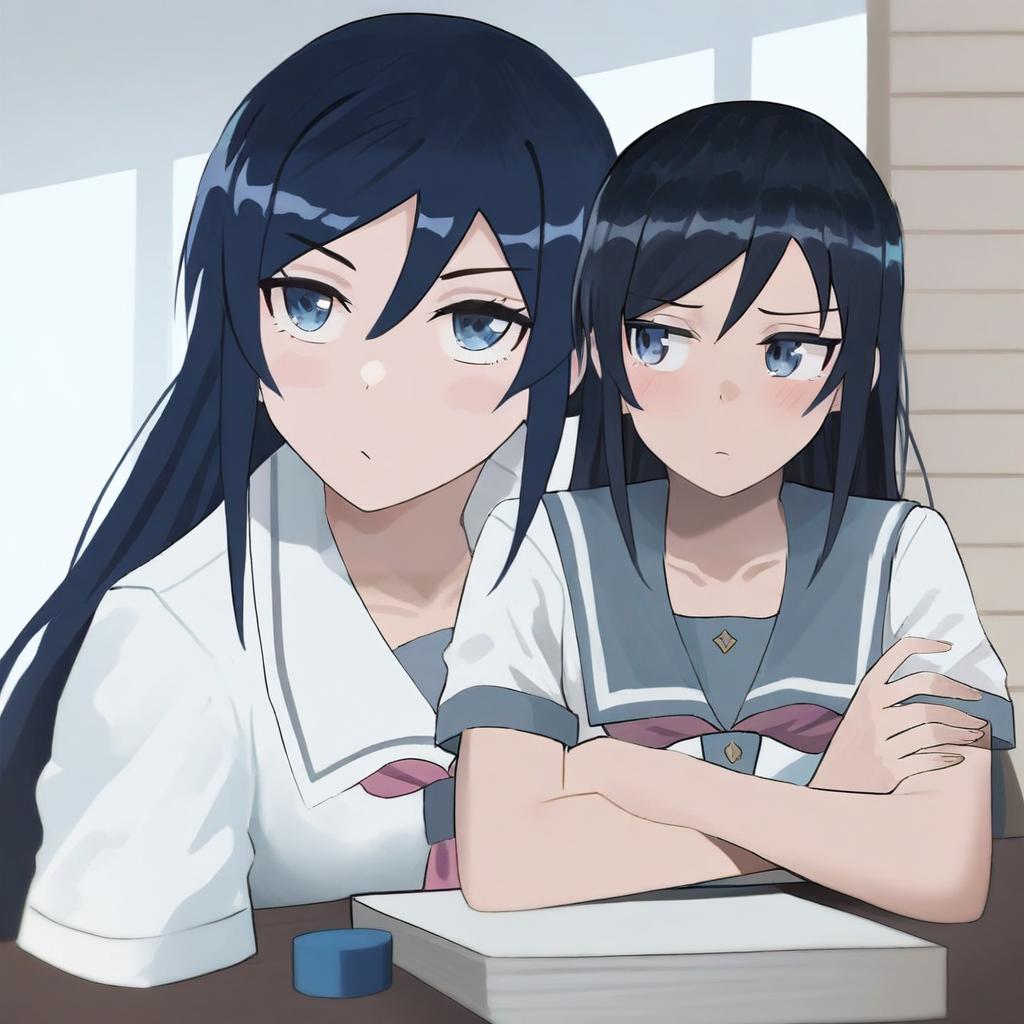 Aragaki ayase, ore no imouto ga konna ni kawaii wake ga nai, 1girl, blue eyes, long hair, black hair, kousaka kirino's school uniform, by artist jourd4n, animagine