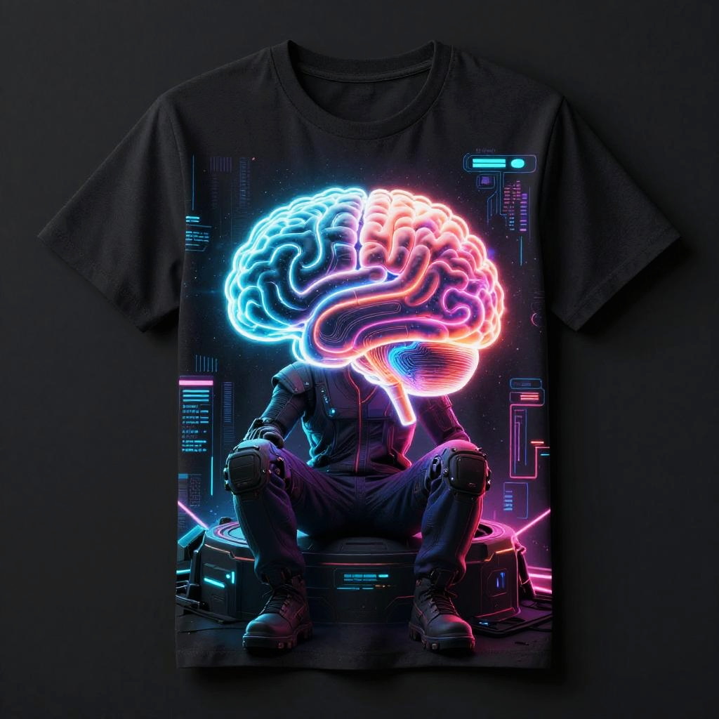 Futuristic AI Brain T-Shirt Design