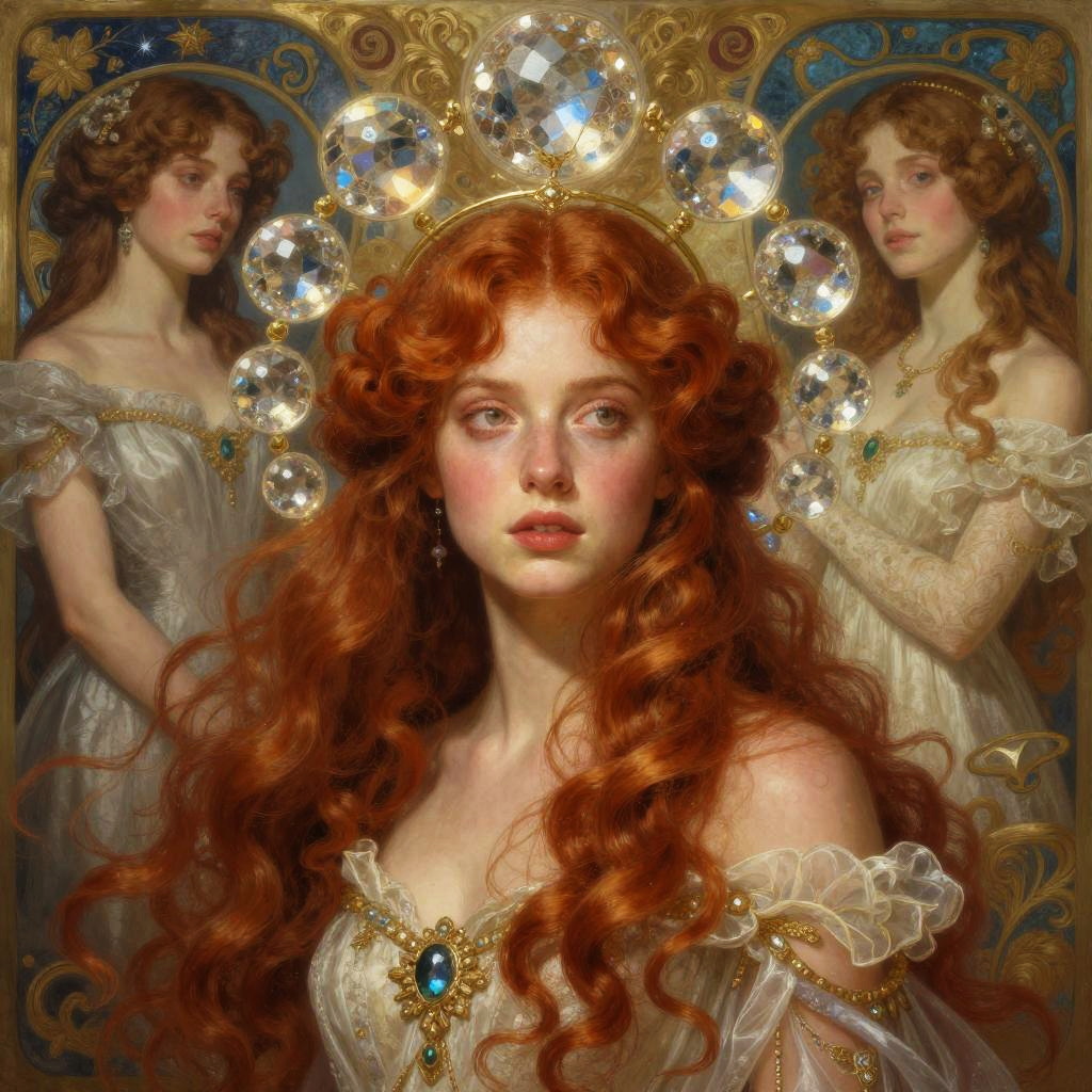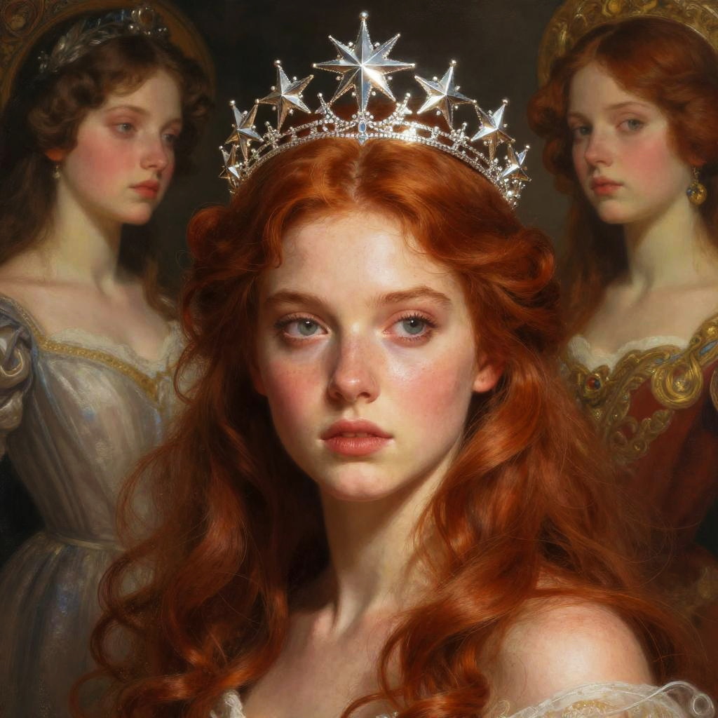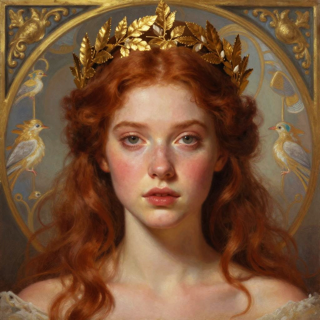 Beautiful line art of a young red hair woman wearing an ornate chain head jewelry, intricate, elegant, highly detailed, digital painting, artstation, concept art, smooth, sharp focus, art by krenz cushart and artem demura and alphonse mucha, dynamic lighting, ultrarealistic, cinematic, octane render, 8 k