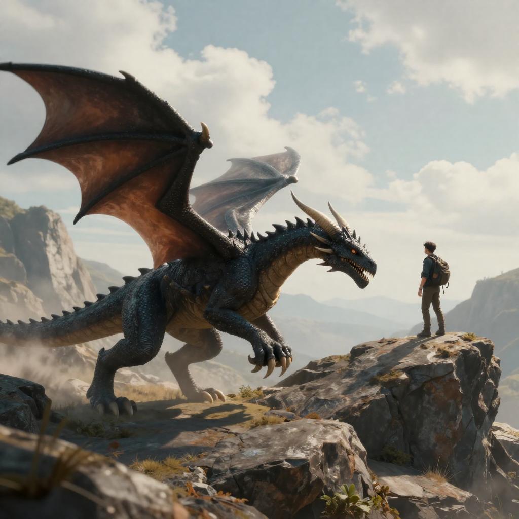 Blue-Clad Child vs Leaping Dinosaur
