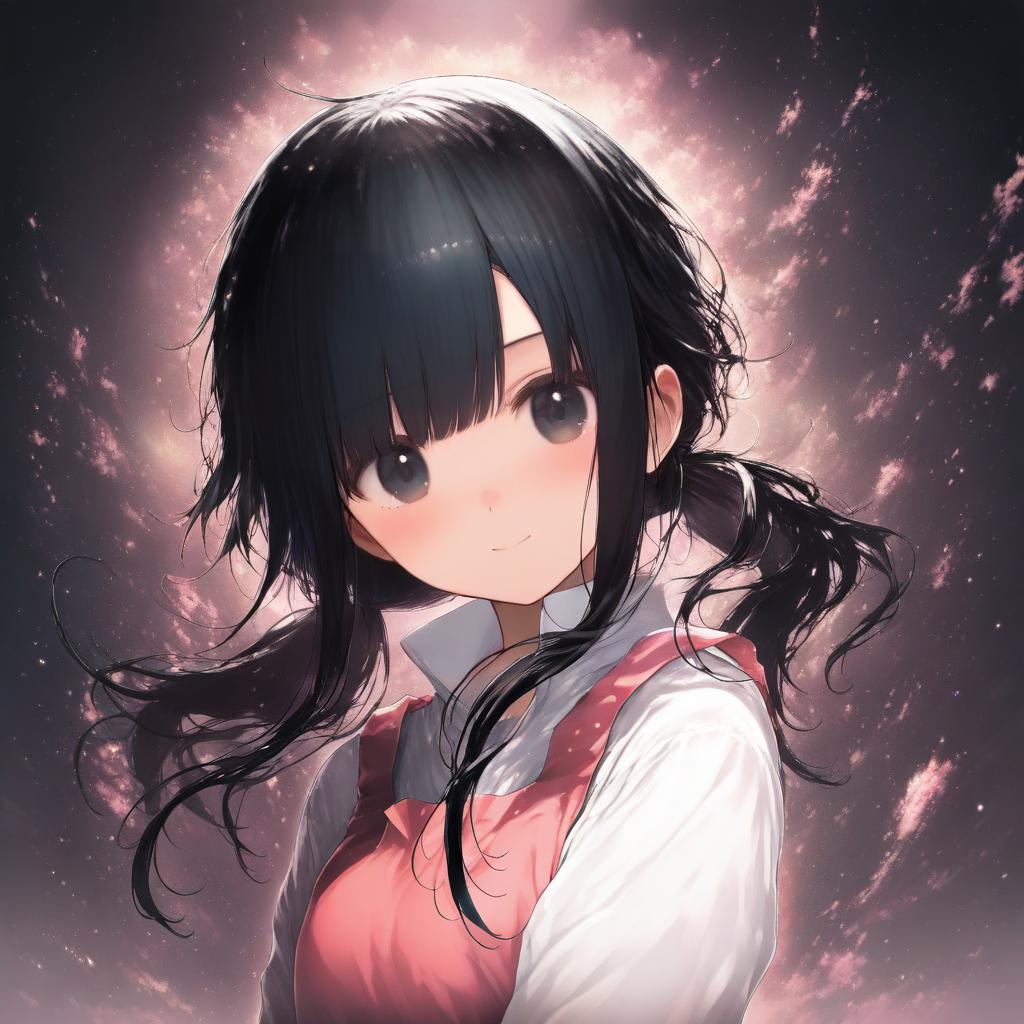 Asahina hiyori, kagerou project, 1girl, black eyes, black hair, long hair, low twintails, twintails, by artist endou hiroto, animagine