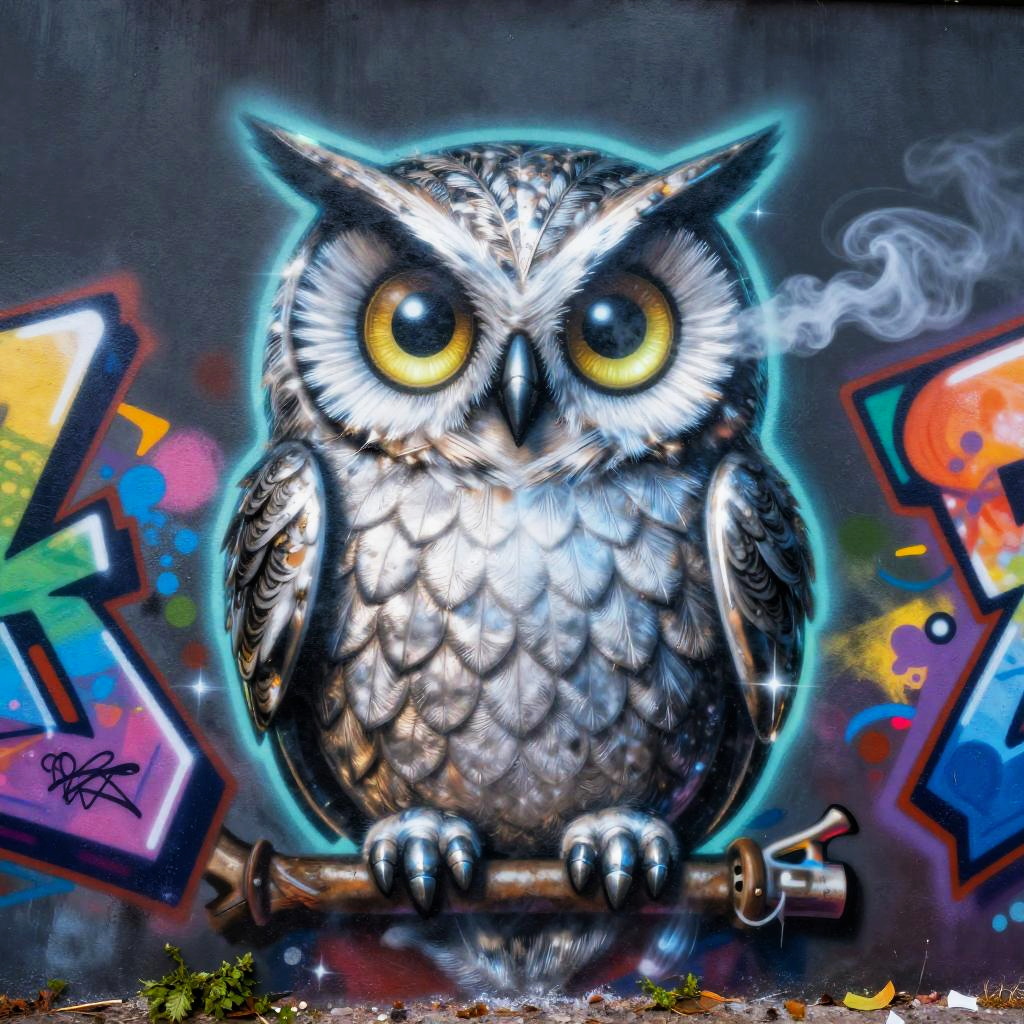 Luminescent Steam-Powered Owl Graffiti