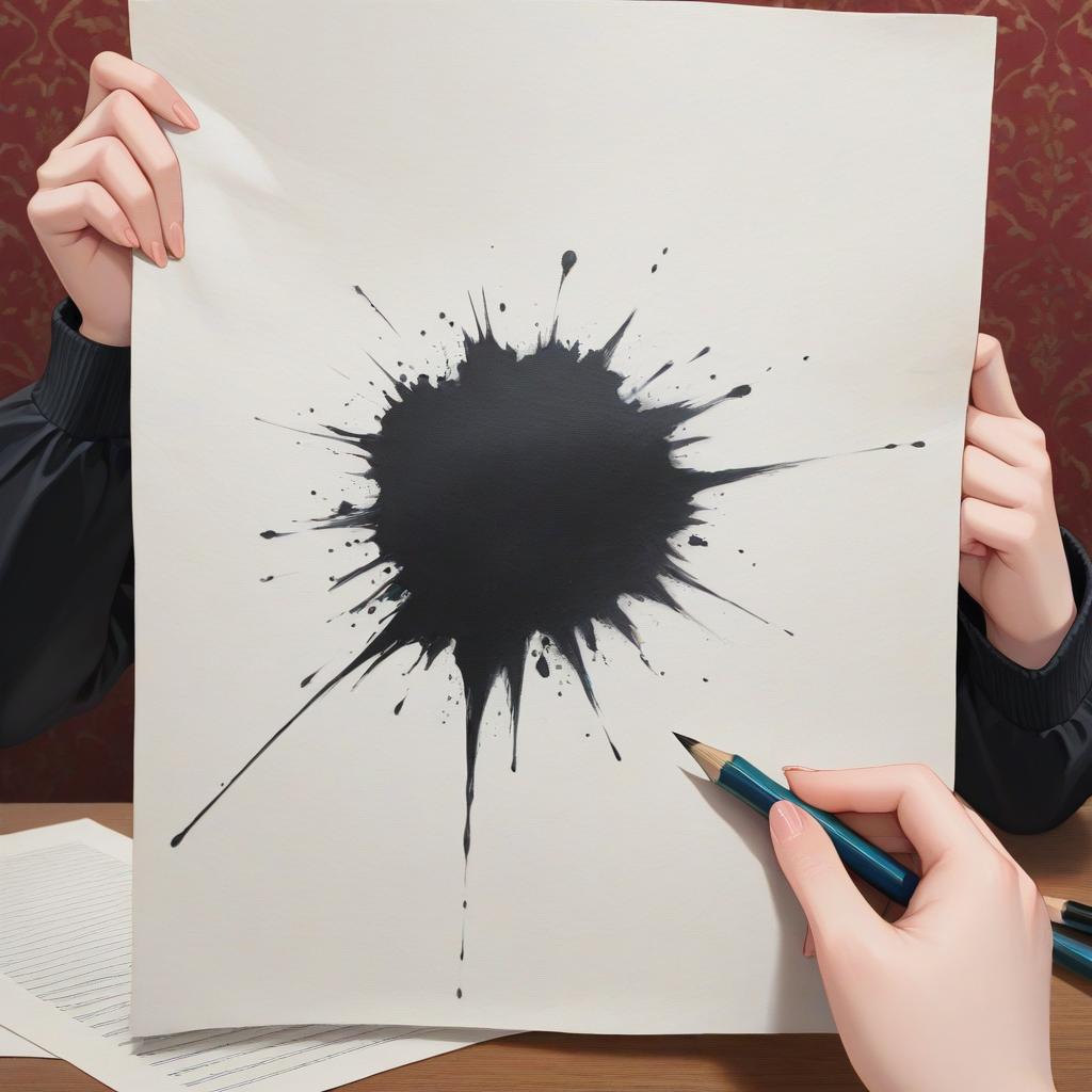 Masterpiece, high quality, beautiful wallpaper, 16k, photo shoot, 1girl, solo, ink stain, ink wash painting, ((paper)), holding paper, ((drawing girls on paper)), pencil