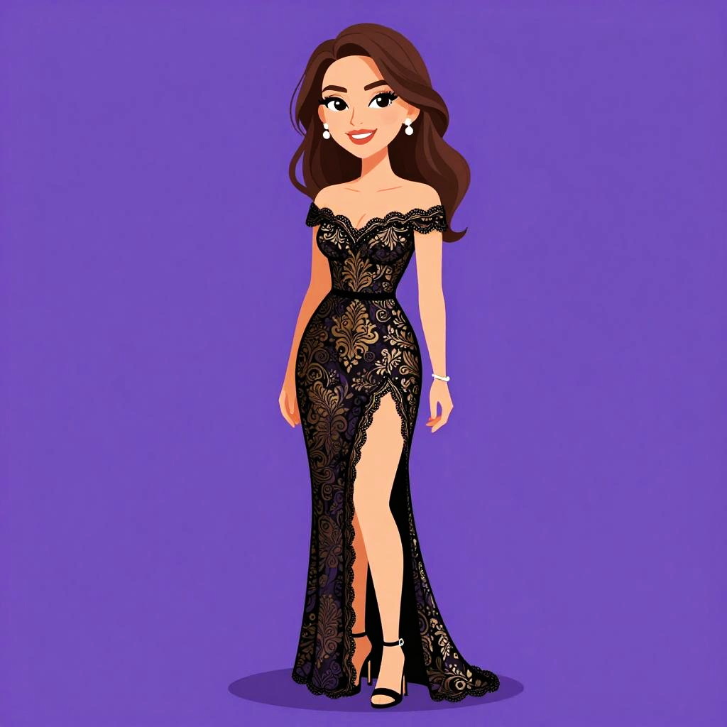 Elegant Woman in Black Lace Dress