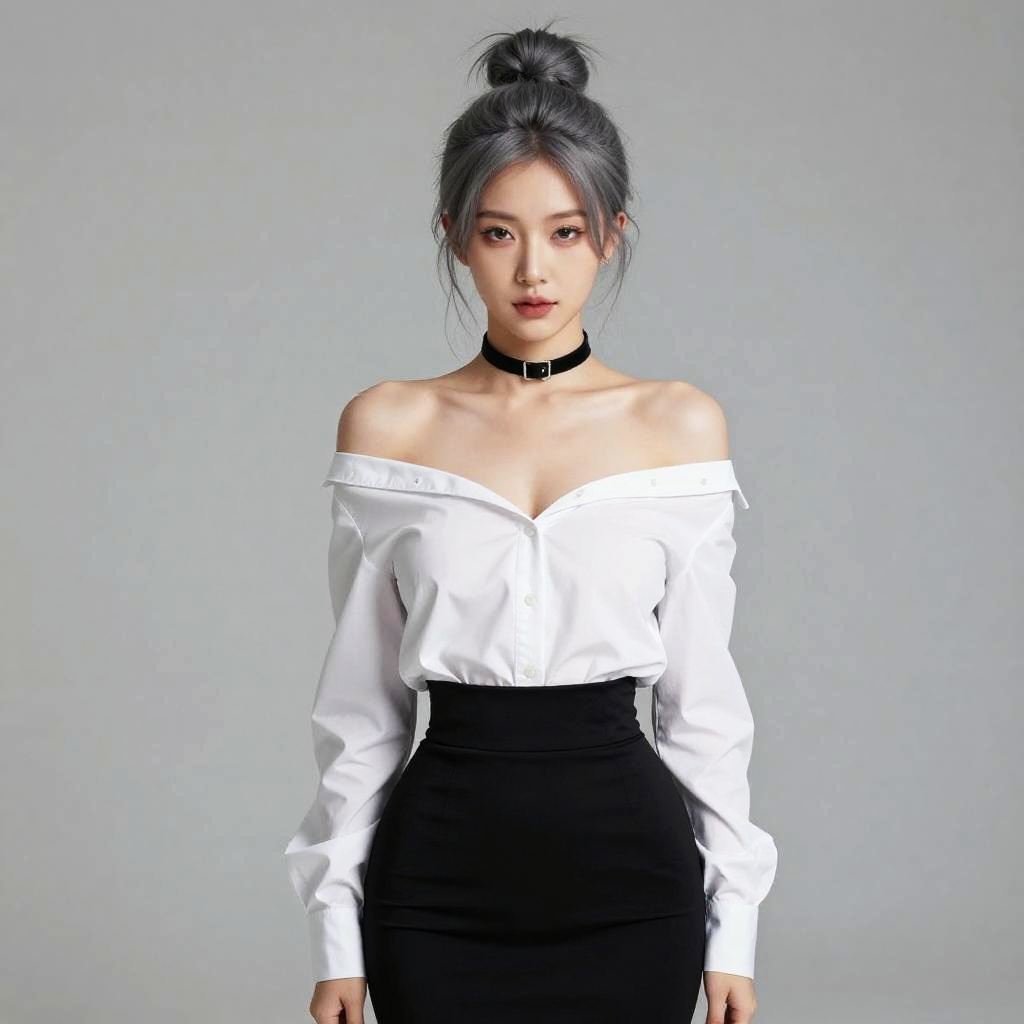 (best quality, masterpiece:1.3), (realistic, photo realistic:1.3), ultra high res, UHD, extremely detailed CG unity 8k wallpaper, sharp focus, absurdres, (realistic skin, detailed skin), (perfect anatomy), cinematic lighting, best shadow, glossy lips, (mature face), Beautiful korean girl college student, light makeup, red lips, (purple hair, messy long hair), street, grace, ((White skinny turtleneck top)), ((white skinny jeans)), slim figure, walking earring, necklace