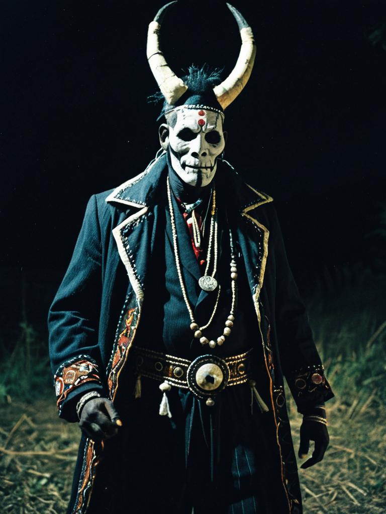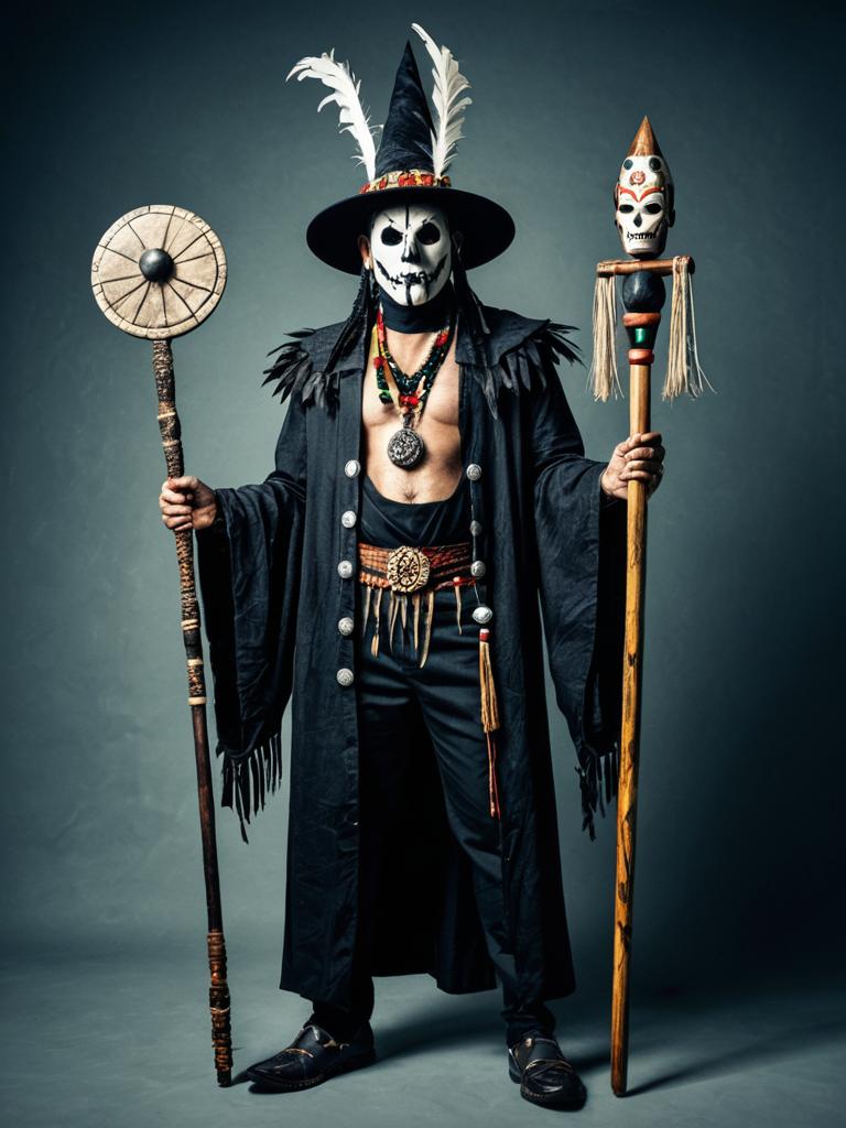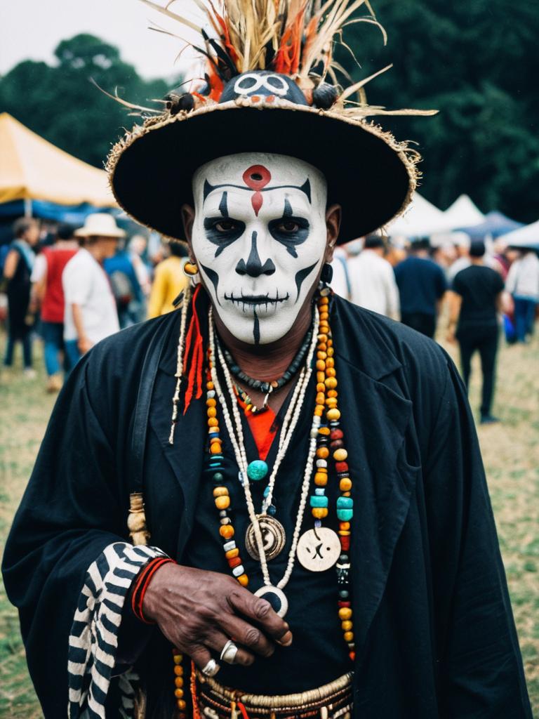 Man in Witch Doctor Costume, candid cosplay portrait at festival