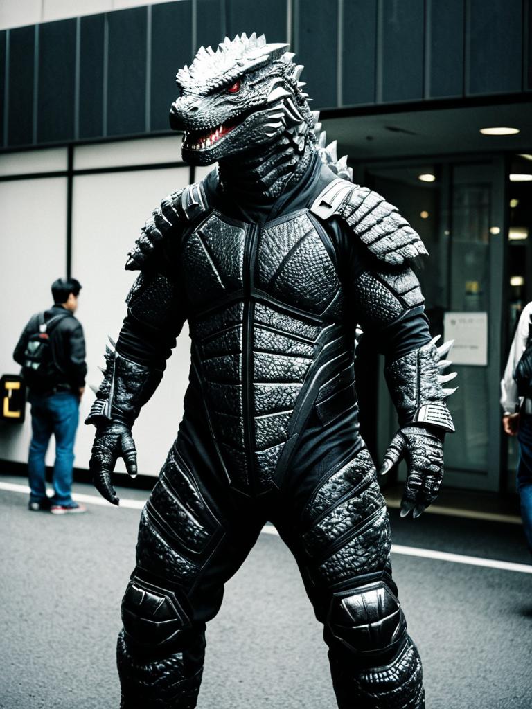 Man in Godzilla Costume, full-body cosplay photo with detailed suit