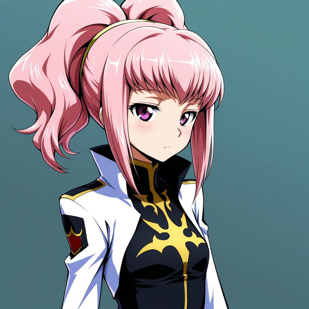 Anya alstreim, code geass, 1girl, red eyes, pink eyes, pink hair, knights of the round uniform, by artist chita (ketchup), leet