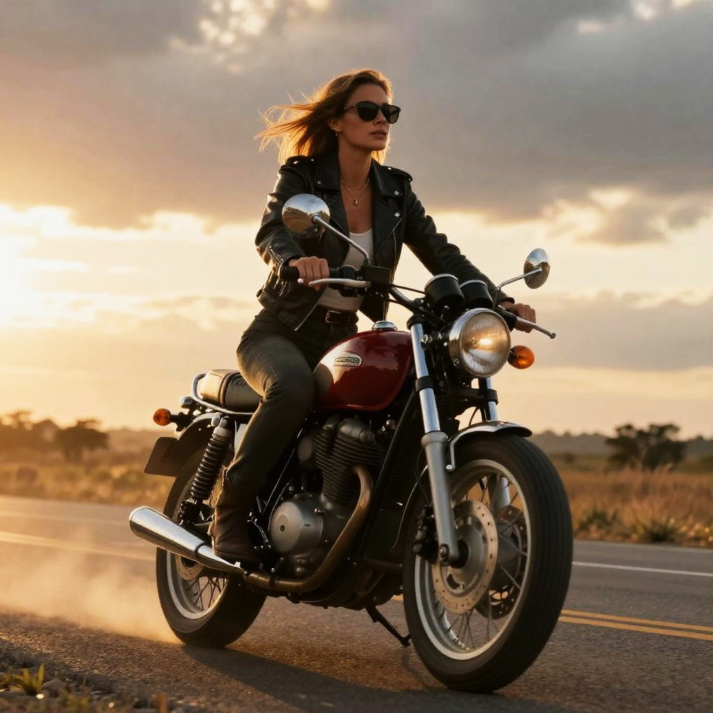Realistic photo.Lara Croft riding a motorcycle. realistic photo