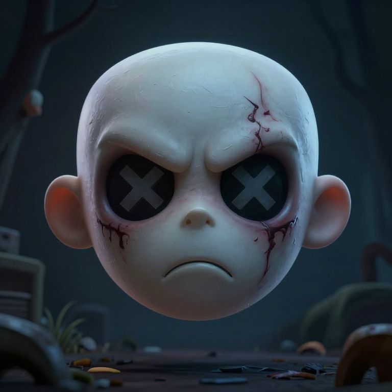 Unity horror, scary floating boy face, 3d game art, scars in the shape of an X instead of eyes, angry face,