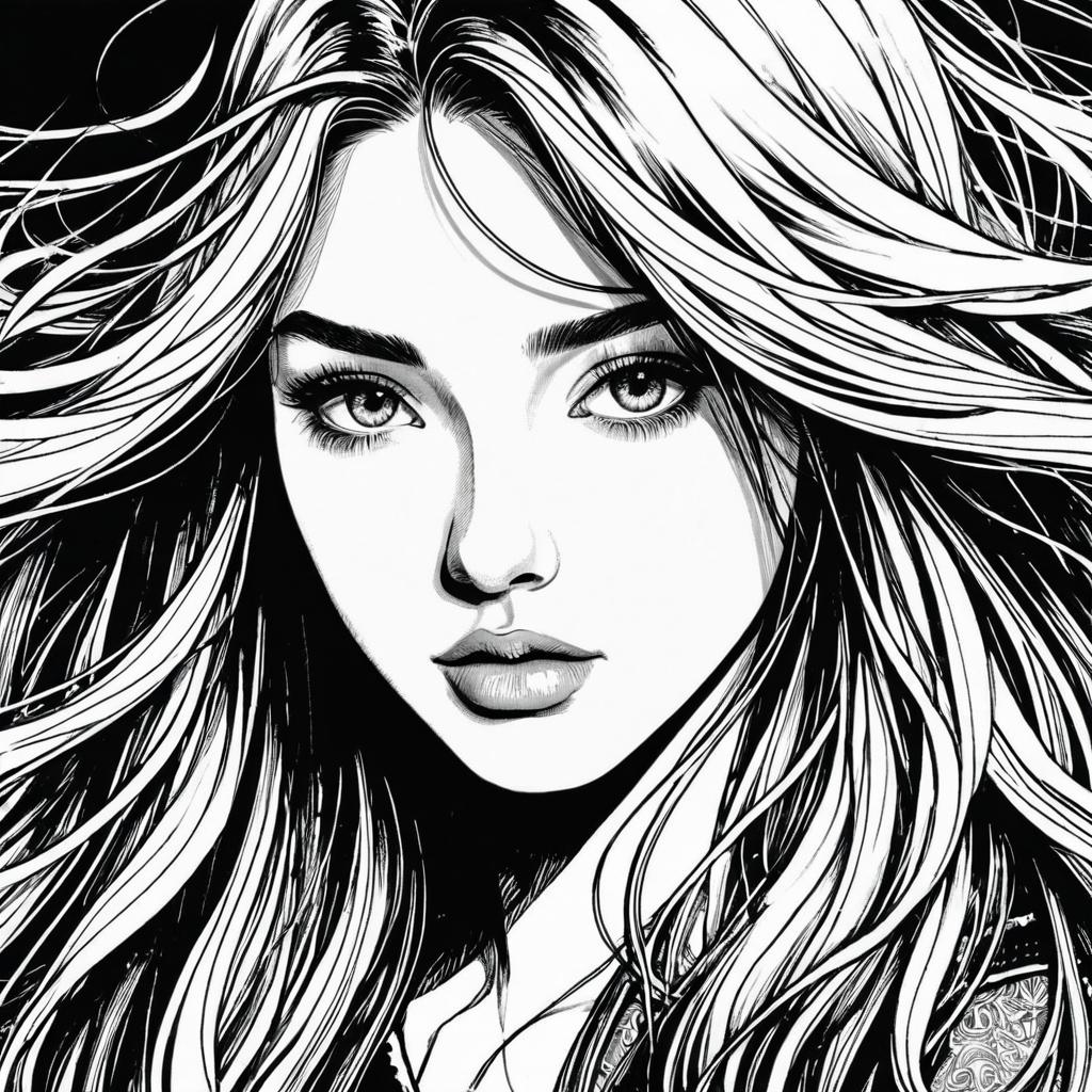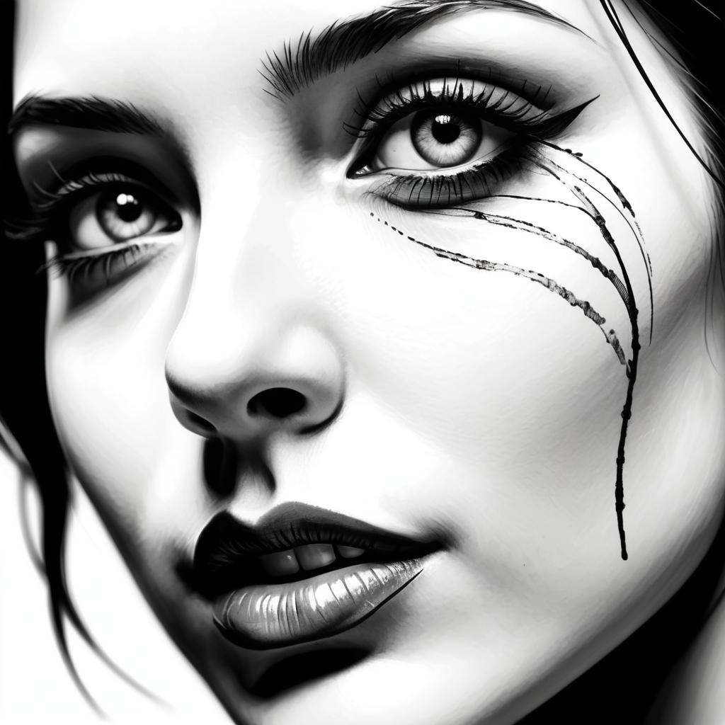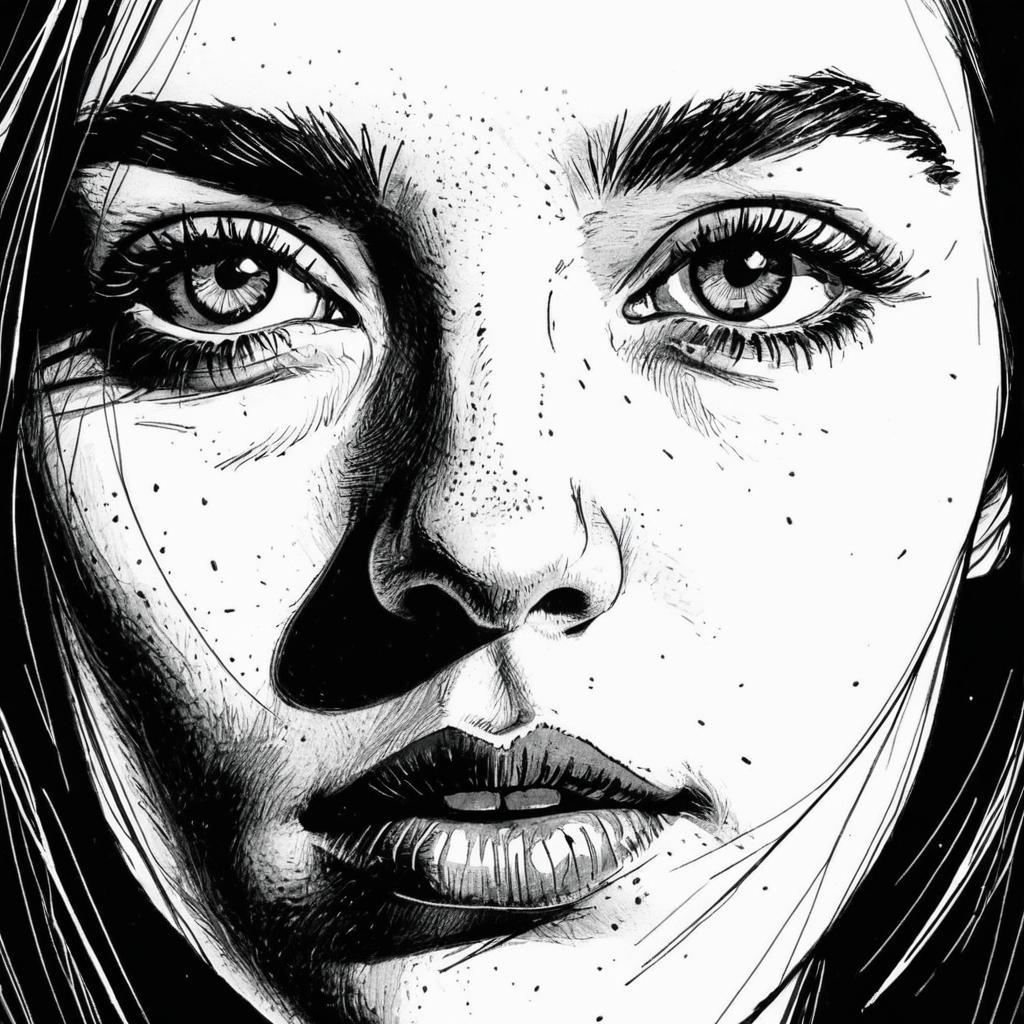 Close-Up Ink Sketch of Woman
