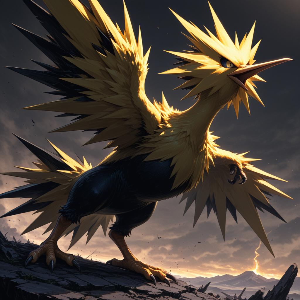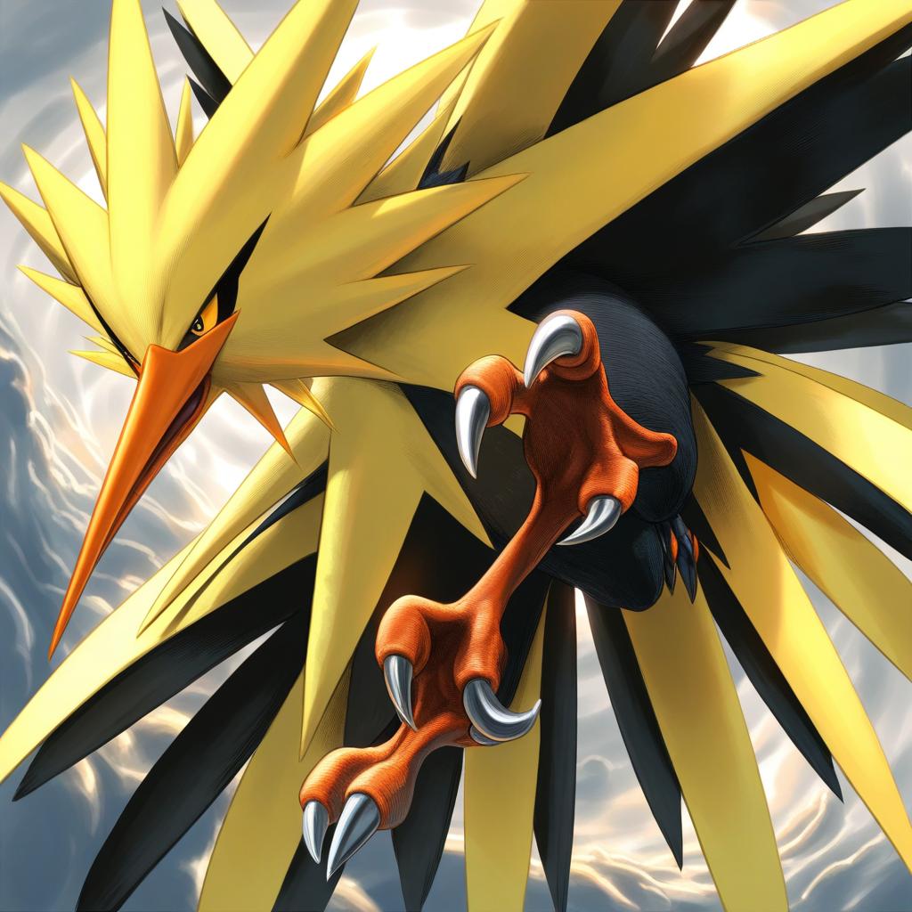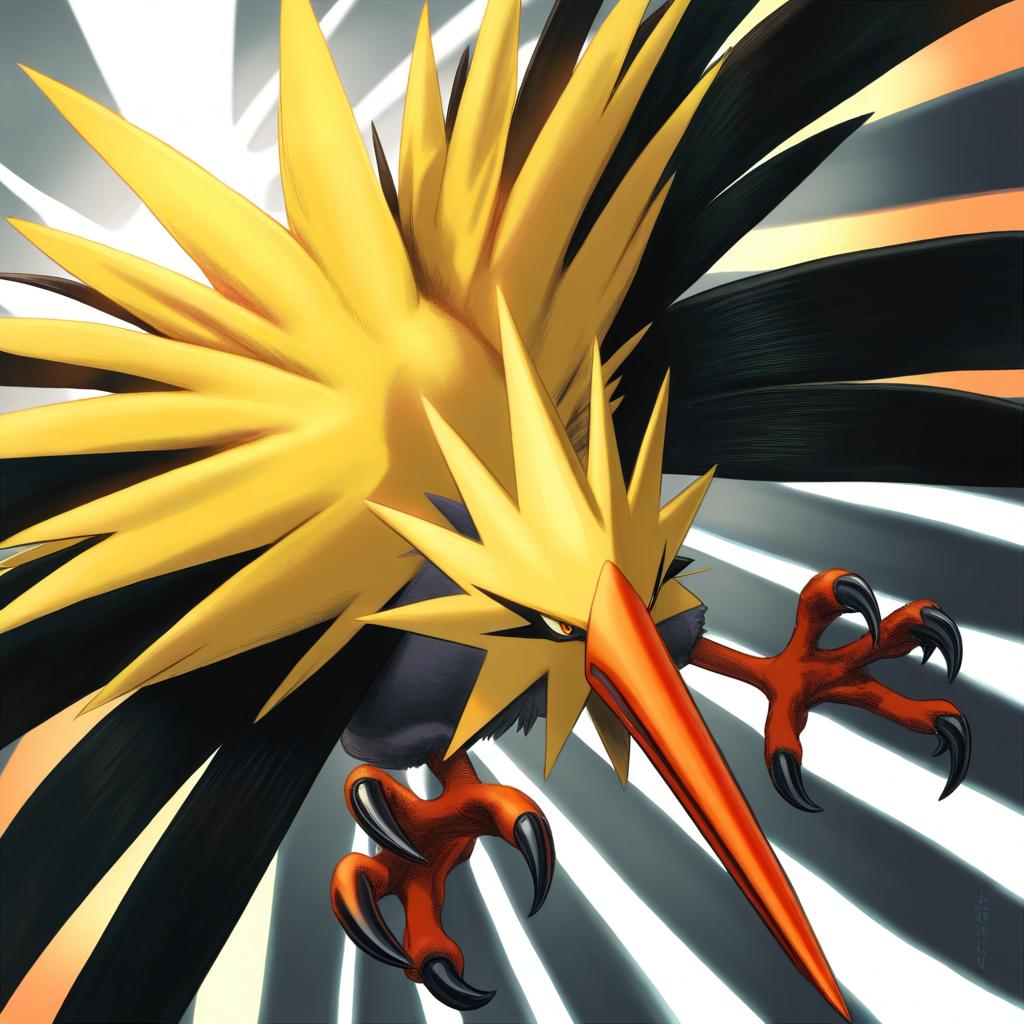 Zapdos, pokemon, no humans, pokemon (creature), bird, claws, by artist musen-shiki sanhankikan, animagine