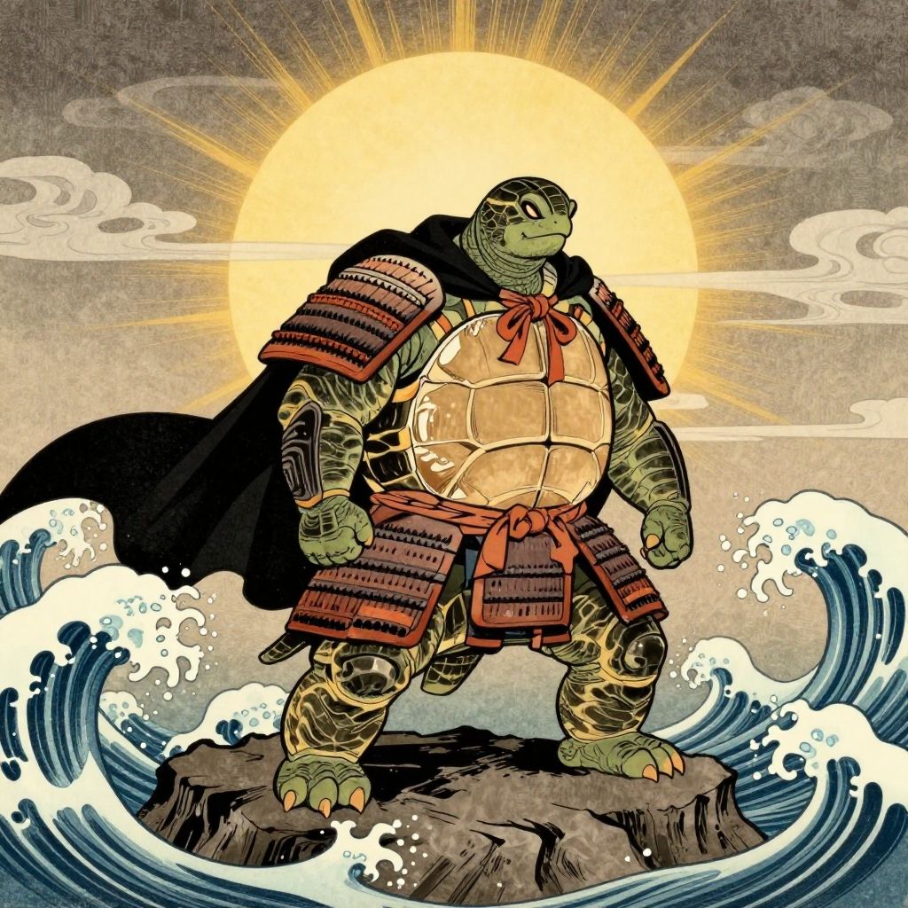 Heroic Samurai Turtle Ukiyo-e Illustration